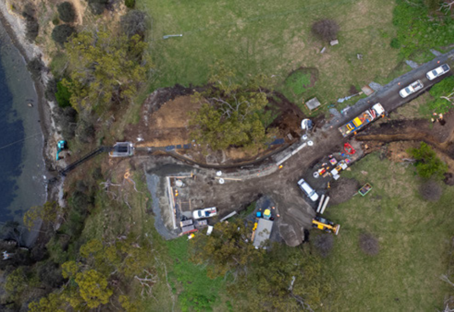 Shaw delivered the design and construction of a 2.2km submarine cable between Tinderbox and Dennes Point, securing Bruny Island’s electricity supply and reducing diesel reliance. The project involved cliff-mounted structures, marine installations, and sensitive environmental conditions. Despite last-minute vessel changes and COVID-19 supply issues, Shaw completed the complex project safely, on time, and within budget. This project won Shaw a prestigious award with the Civil Contractors Federation (CCF) winner of Institute of Engineers Australia Award.