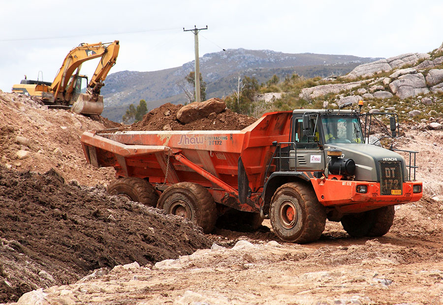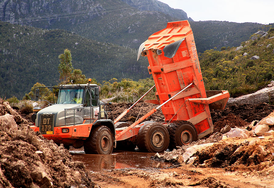 The catchment goes into an eight-kilometre tunnel from the Anthony Dam and then into the underground Tribute Power station. Development of the Red Hills Creek diversion tunnel utilised hand held machine and drill and blast techniques. This provided the following advantages:
